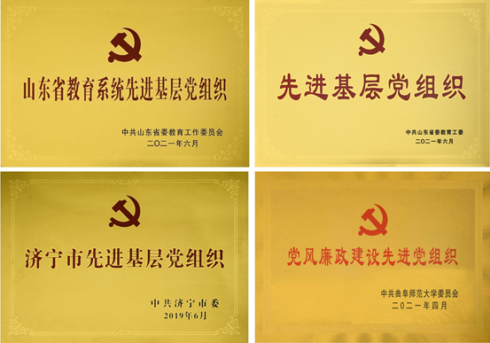 2019年,学院党委获得“济宁市先进基层党组织”荣誉称号;2020年,本科生党支部入选教育部“全国党建工作样板支部”;2021年,本科生党支部获得“山东省教育系统先进基层党组织”,研究生党支部获批山东省高校研究生样板党支部培育创建单位;2022年,本科生党支部顺利通过“全国党建工作样板党支部”验收,学院党委连续多年荣获“党建与全面从严治党党风廉政建设先进党组织”。2019年,郑召文同志获得“济宁市优秀共产党员”;2020年,本科生党支部书记朱伟卫同志获“山东高校辅导员年度人物”。学院的党建工作实现了新攀升,打造了引领学院事业发展的政治核心,为学院各项事业发展提供了坚实的政治保证。