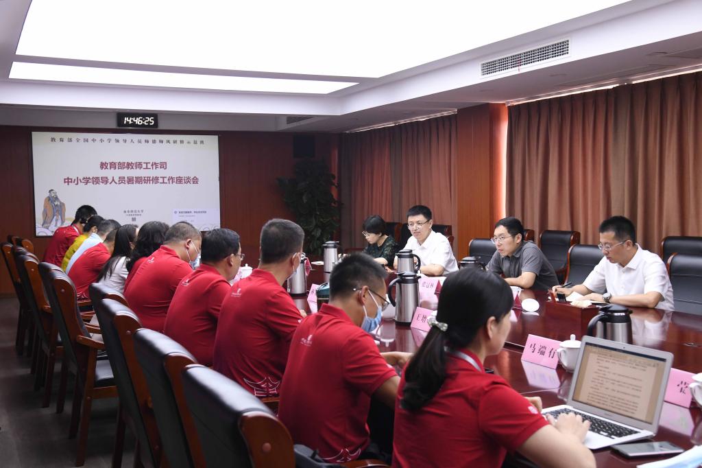 座谈会上,学员们围绕贯彻落实中小学校党组织领导下的校长负责制、提升暑期研修针对性实效性、改进国家智慧教育平台使用等工作,畅所欲言,积极建言献策。大家认为,贯彻落实党组织领导的校长负责制,是为党育人、为国育才的重要举措,从根本上保证了办学的正确方向,但需要进一步完善实际运行中的工作机制;国家智慧教育平台促进了优质教育的共享,让边远地区的老师也能享受到优质教学资源,同步提升教育理念,但还需进一步优化升级,比如打造课程超市,体现课程的丰富度,让培训老师有更多的选择;比如体现课程培训内容的层次性,难易均衡;比如体现清晰的知识结构,形成菜单式模块等。