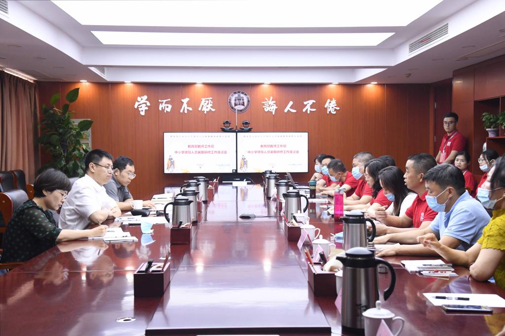 曲阜师大新闻中心讯(通讯员:徐秀 摄影:董少伟)8月16日,教育部教师工作司在华体会官方网召开座谈会,听取对于中小学校领导人员暑期研修及《中小学校领导人员管理暂行办法》落实情况的意见建议,了解中小学教师参与国家智慧教育平台“暑期教师研修”专题学习的情况。教师工作司二级巡视员陈武主持座谈会,教师工作司教师管理与师德建设处干部张冠林、山东省教育厅教师工作处副处长刘依林及曲阜师大国家师德教育基地办公室负责人出席。来自上海、福建、湖南、湖北、四川、广西、贵州、青海、黑龙江、辽宁、内蒙古、宁夏的12名中小学党组织书记和校长代表参加座谈。