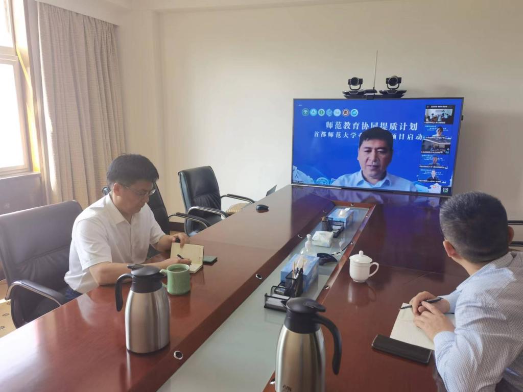 曲阜师大新闻中心讯(通讯员:张惠)  5月24日,教育部师范教育协同提质计划首都师范大学牵头组团项目启动会以线上方式召开。会上,首都师范大学校长方复全致辞并介绍了项目方案,中国教师发展基金会副秘书长张东燕在会上讲话。曲阜师大党委副书记、校长张洪海,党委常委、副校长胡钦晓、胡凡刚,参加会议。