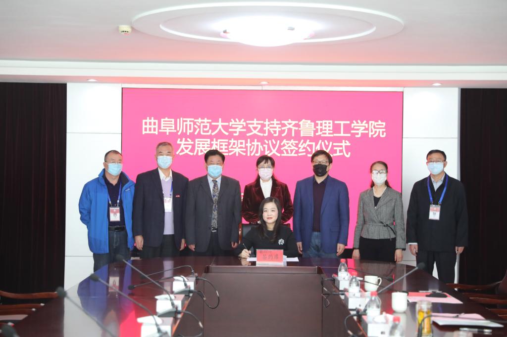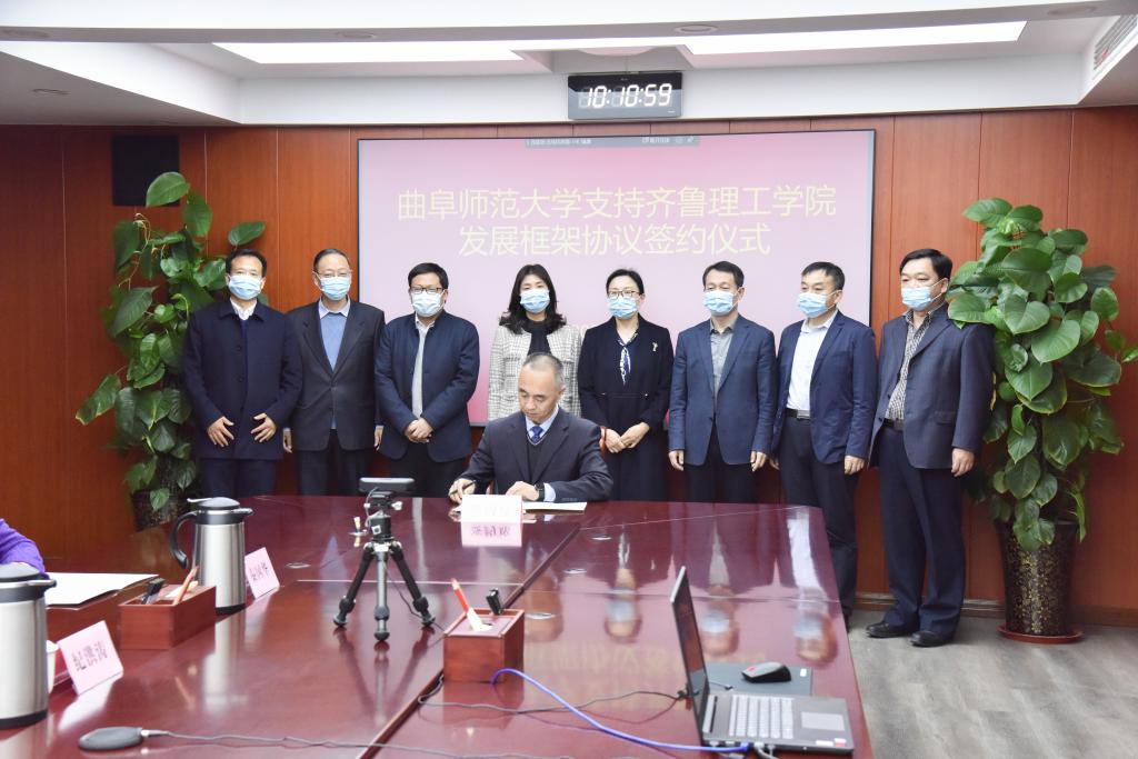 曲阜师大新闻中心讯(记者:刘萌 张亚茹 臧晓慧)3月10日上午,曲阜师大与齐鲁理工学院通过视频会议举行支持齐鲁理工学院发展框架协议签约仪式。华体会官方网党委副书记、校长张洪海,党委常委、副校长李兆祥,党委常委、组织部部长郭庆兵,齐鲁理工学院董事长、校长常翠鸣,副校长、总督学魏希启,副校长于衍真、单成娟、张庚灵出席签约仪式。我校相关单位学院负责人参加了活动。签约仪式由齐鲁理工学院副校长张庚灵主持。