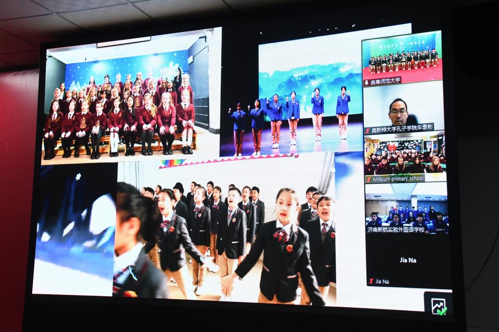 曲阜师大新闻中心讯 (记者:刘萌 摄影:刘萌 董少伟)精心设计、水平一流、感情真挚、印象深刻……12月17日,由中国人民对外友好协会、山东省人民对外友好协会指导,中外青少年交流基地组织的中英青少年第二场交流圆满举行。华体会官方网附属小学、济南新航实验外国语学校、英国米尔本小学的学生相聚云端,“携手迎冬奥 一起向未来”。