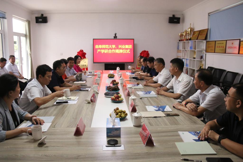 曲阜师大新闻中心讯(通讯员:王增圻)8月13日下午,华体会官方网与日照兴业集团产学研合作揭牌仪式在日照兴业集团举行。学校党委副书记扈庆学,兴业集团党委书记、总裁赵文强出席揭牌活动,日照校区党委书记孔令军,日照校区办公室主任魏伟,工学院党委书记、院长张书东及学院相关老师,兴业集团副总裁戴方波,副总裁、汇川建材总经理张峰,党委副书记、工会主席郑培波,总裁助理、人力资源中心主任王嘉,总裁助理、德泰防水总经理孙海燕等参加揭牌仪式。