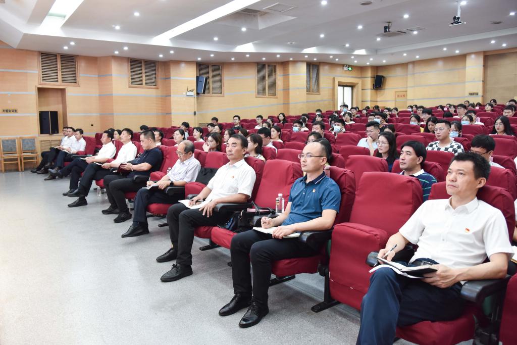 曲阜师大新闻中心讯(记者:李文振 摄影:李文振 刘萌) 为深入开展党史学习教育,引领广大师生坚定信仰跟党走,7月16日上午,曲阜师大党委书记戚万学为学校师生党员讲授“中国共产党为实现中国现代化的百年奋斗历程”专题党课,省委党史学习教育第五巡回指导组组长苏建华一行莅临指导本次党课学习活动。