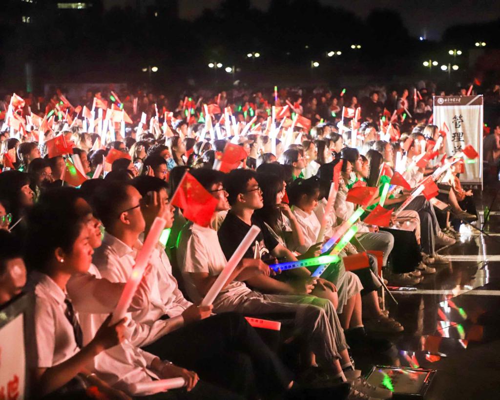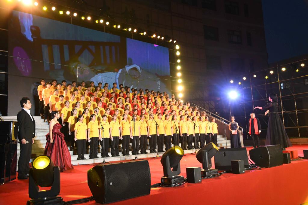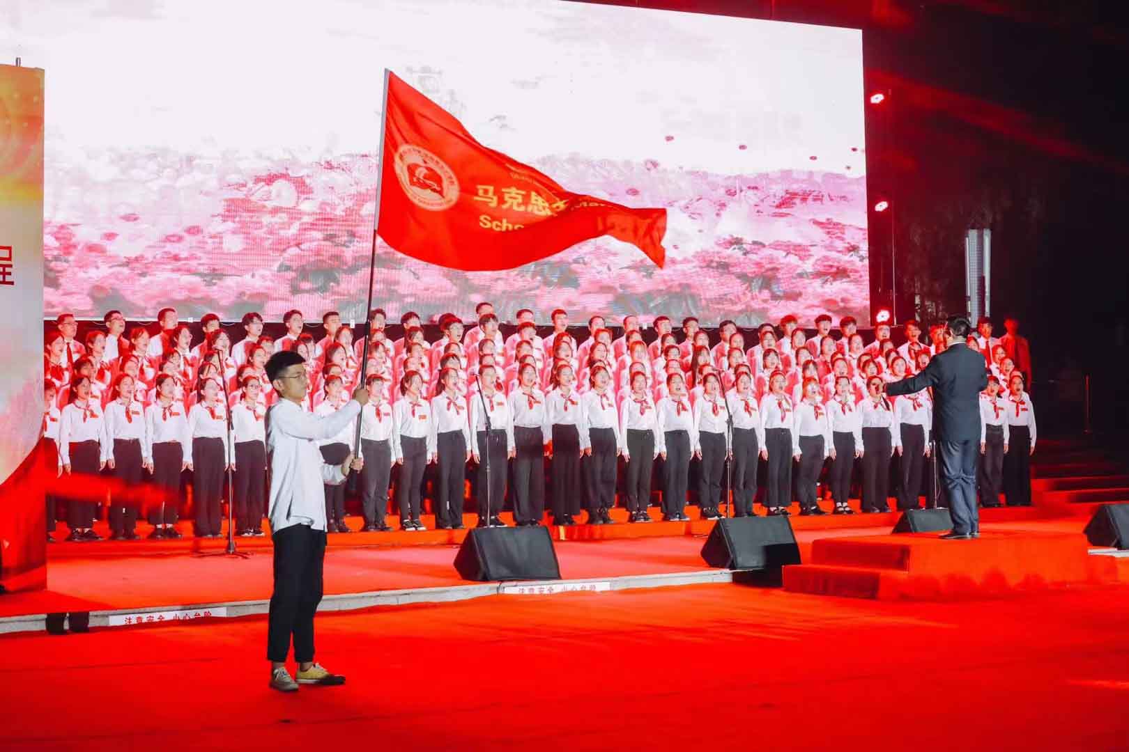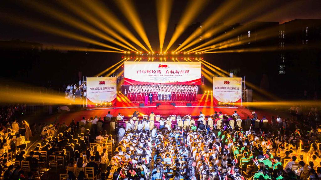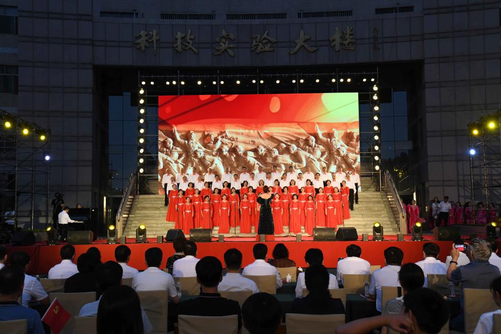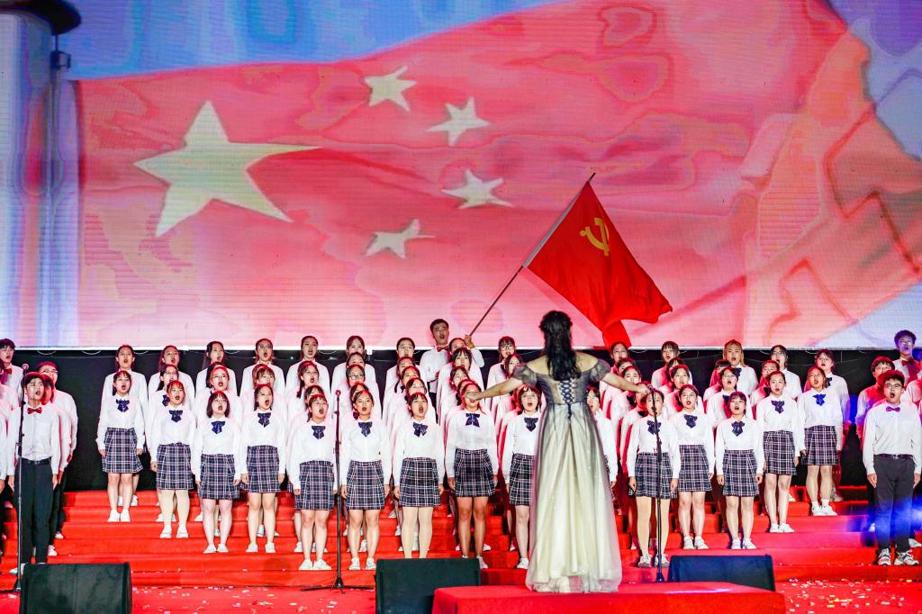 演出中,师生们的歌声或激越高昂、气势澎湃,或婉转悠扬、韵味典雅,辅以绚丽多彩的服装和舞台设计,融合优美的舞蹈表演和生动的情景短剧,并通过背景大屏幕上的一组组标志性画面呈现党的奋斗足迹和丰功伟绩,全方位打造了一场精彩的视听盛宴。