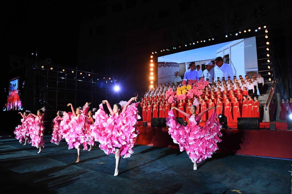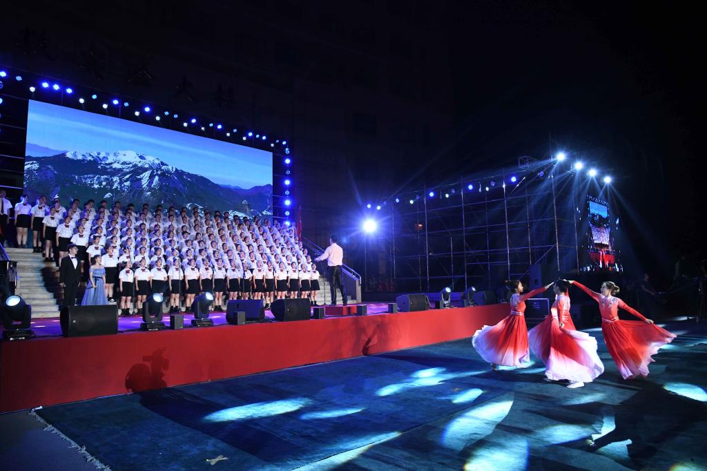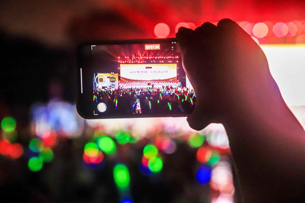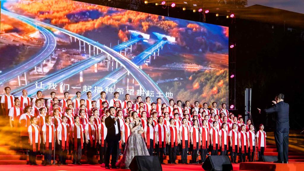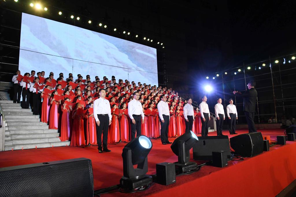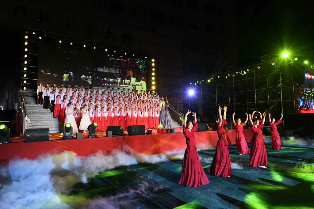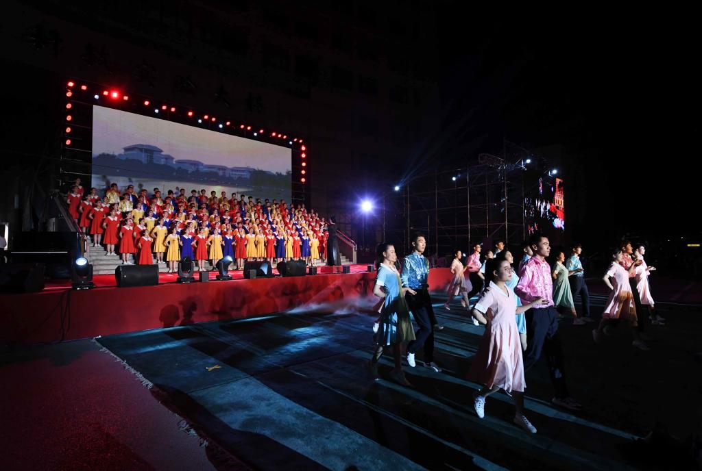 演出中,师生们的歌声或激越高昂、气势澎湃,或婉转悠扬、韵味典雅,辅以绚丽多彩的服装和舞台设计,融合优美的舞蹈表演和生动的情景短剧,并通过背景大屏幕上的一组组标志性画面呈现党的奋斗足迹和丰功伟绩,全方位打造了一场精彩的视听盛宴。