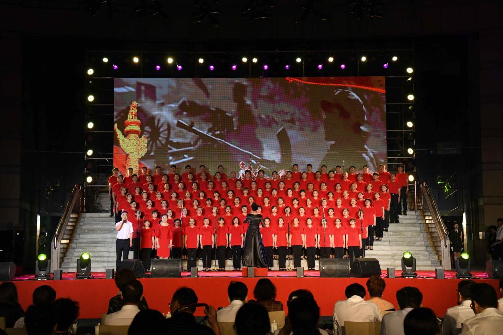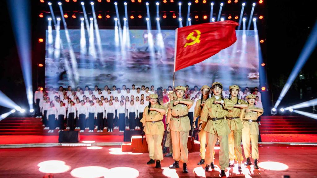 “唱支山歌给党听,我把党来比母亲”……随着满头银发的老教师和稚嫩可爱的小朋友一起唱响经典的旋律,本次演出正式拉开帷幕。随后,一首首动人的红歌、一段段深情的朗诵,伴着曲园的儒风海韵回荡耳畔、直抵人心:《南湖的船党的摇篮》《延安颂》《解放区的天》,歌咏了党的峥嵘岁月和光辉历程;《四渡赤水出奇兵》《红星照我去战斗》《映山红》,让人追忆起红军长征的伟大与壮烈;《毕业歌》《保卫黄河》《中国人民志愿军战歌》,激发着保家卫国的豪情壮志;《红梅赞》《英雄赞歌》《弹起我心爱的土琵琶》,唱出了对先烈的缅怀和对英雄的崇敬;《歌唱祖国》《爱我中华》《国家》《江山》,抒发了浓厚的家国情怀;《社会主义好》《光荣与梦想》《把一切献给党》《伟大的中国伟大的党》,表达了对党的感恩与忠诚;《不忘初心》《走向复兴》《在灿烂阳光下》《新时代新征程》,讴歌了中国共产党带领中华民族走向伟大复兴的使命担当。