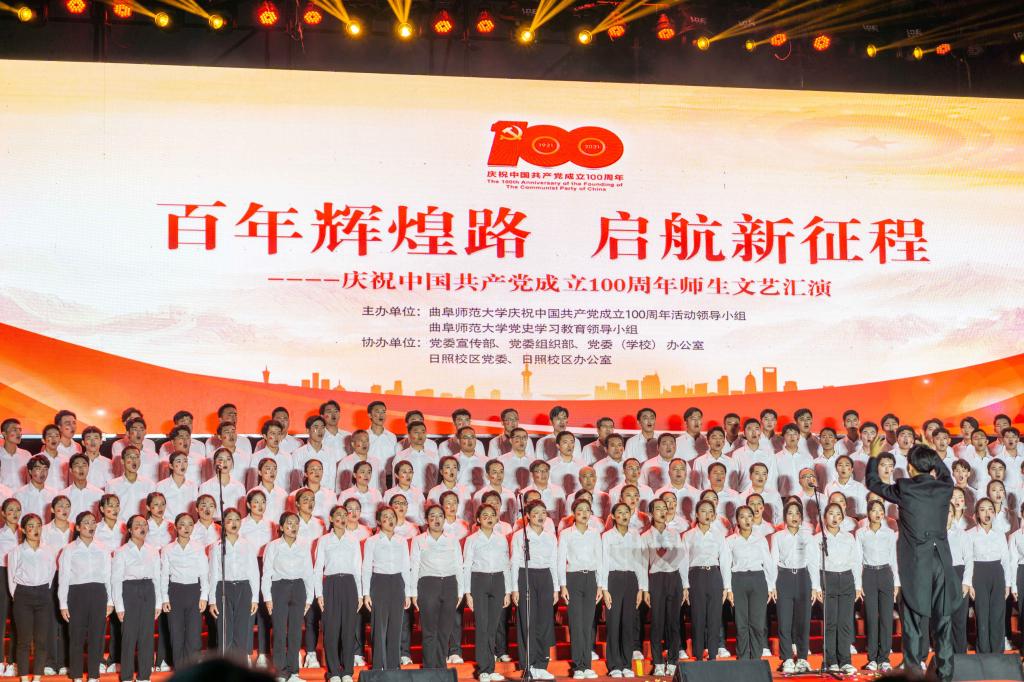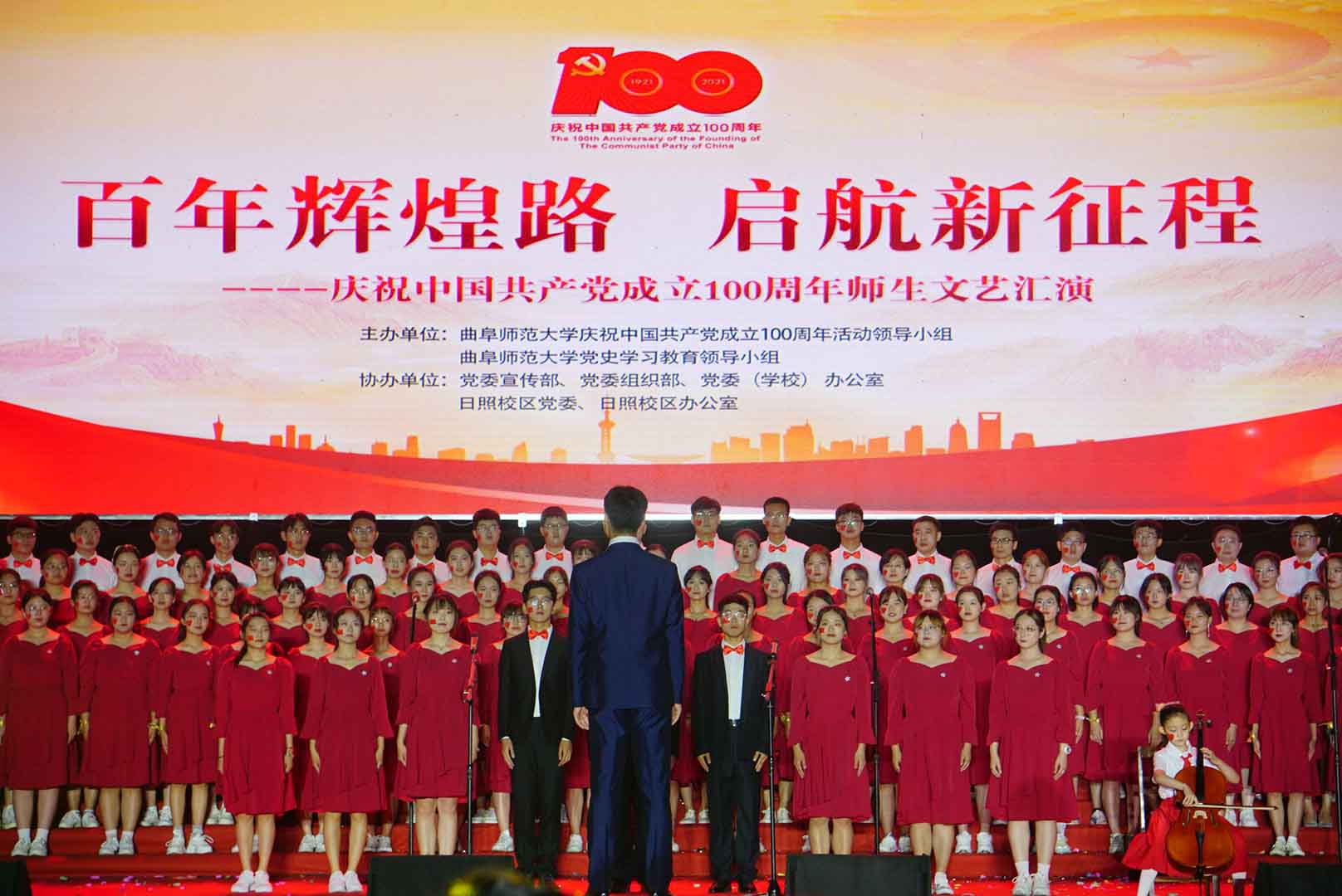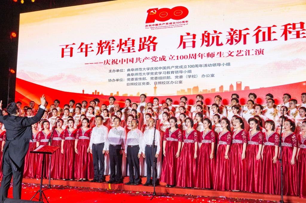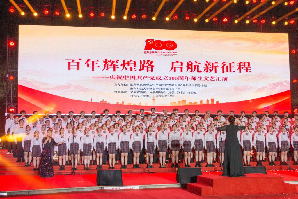 曲阜师大新闻中心讯(记者:李文振 摄影:刘萌 董少伟 王中华 马林梓 姜曰水 尹哲睿 汤捷 刘宇航 王梁 赵宇航 孙龙宇 刘泽翱 通讯员:李玉浩 鹿香玉 宋娜 李梦 刘亚蕊 孙雯 余猜 赵琳 赵伊琳 廖彤欣 王冉 罗珊) 为献礼党的百年华诞、歌颂党的辉煌历史,6月26日晚,华体会官方网隆重举办“百年辉煌路 启航新征程”庆祝中国共产党成立100周年师生文艺汇演,引领广大师生在红色乐章中学党史、知党情、感党恩、跟党走。曲阜校区、日照校区共30个参演单位的师生以饱满的精神、真挚的情感和精心的节目编排,共同打造出一堂极具感染力的党史学习教育公开课。本次文艺汇演开通视频直播,在线点击量近60万。华体会官方网党委书记戚万学,党委副书记、校长张洪海,与党委领导班子成员现场观看了演出。