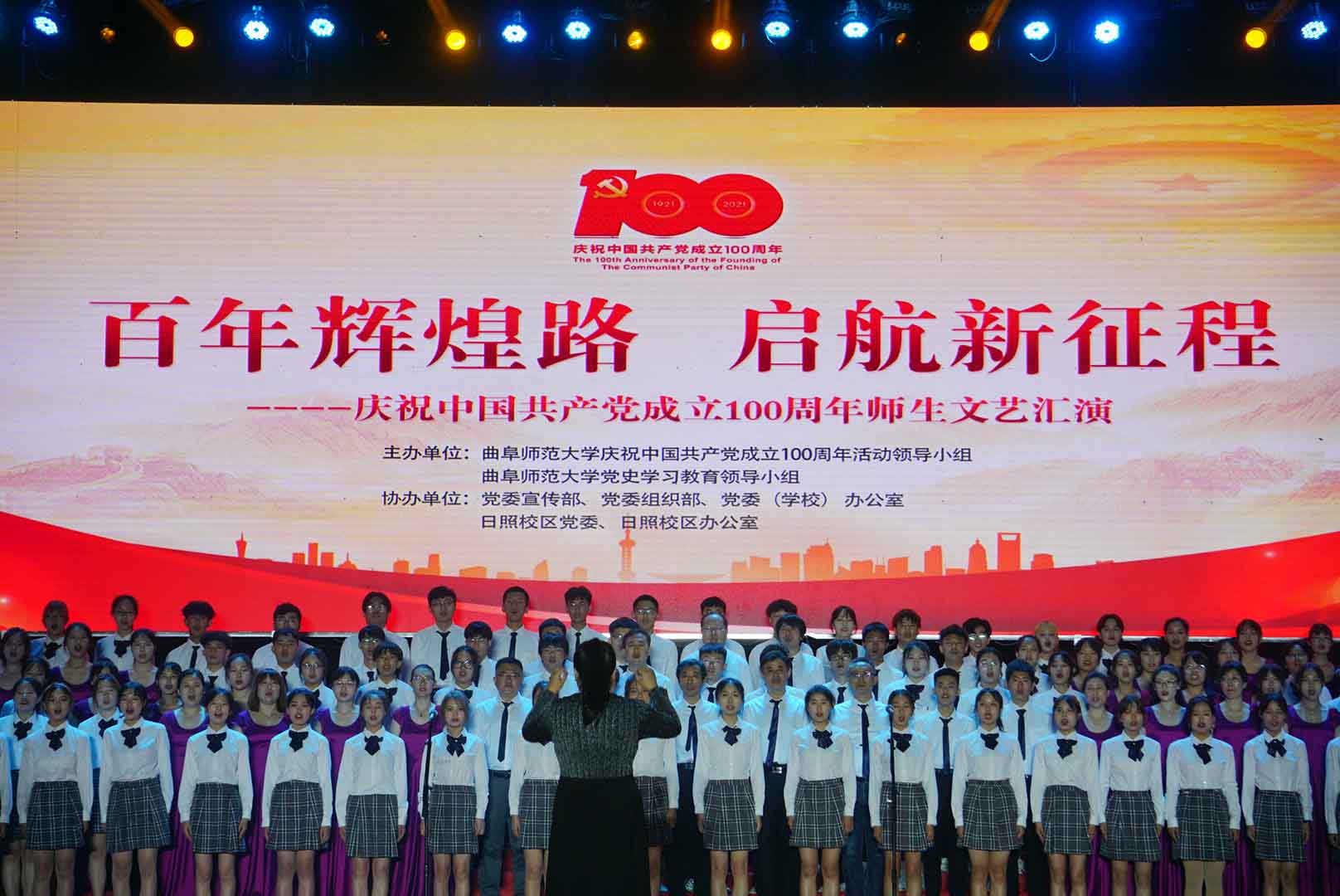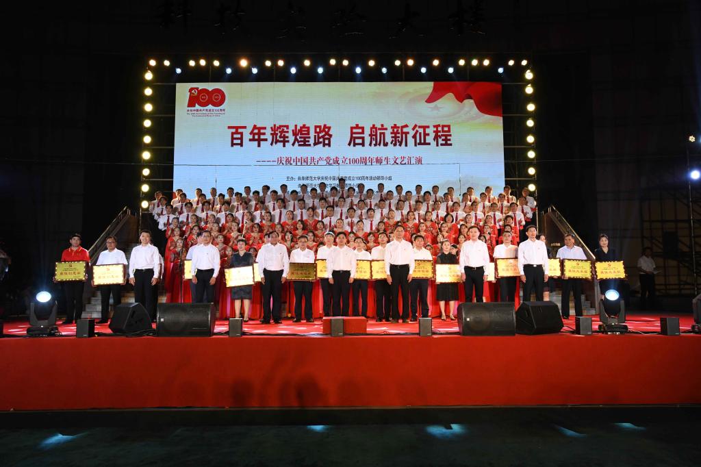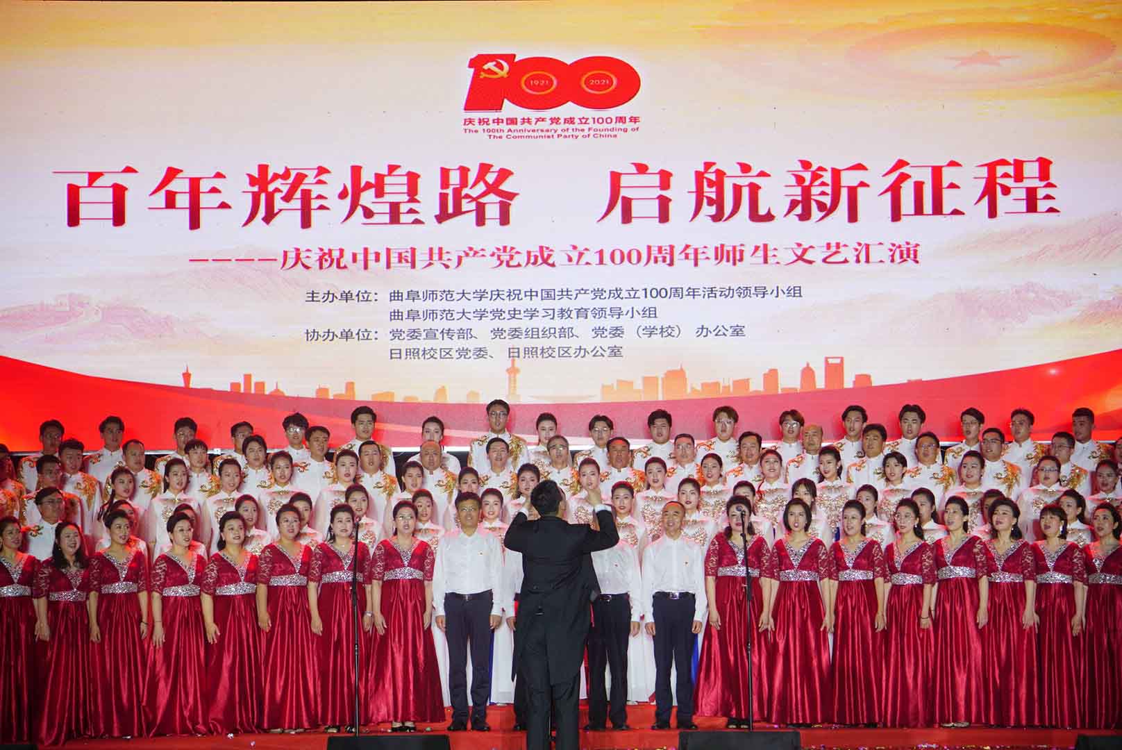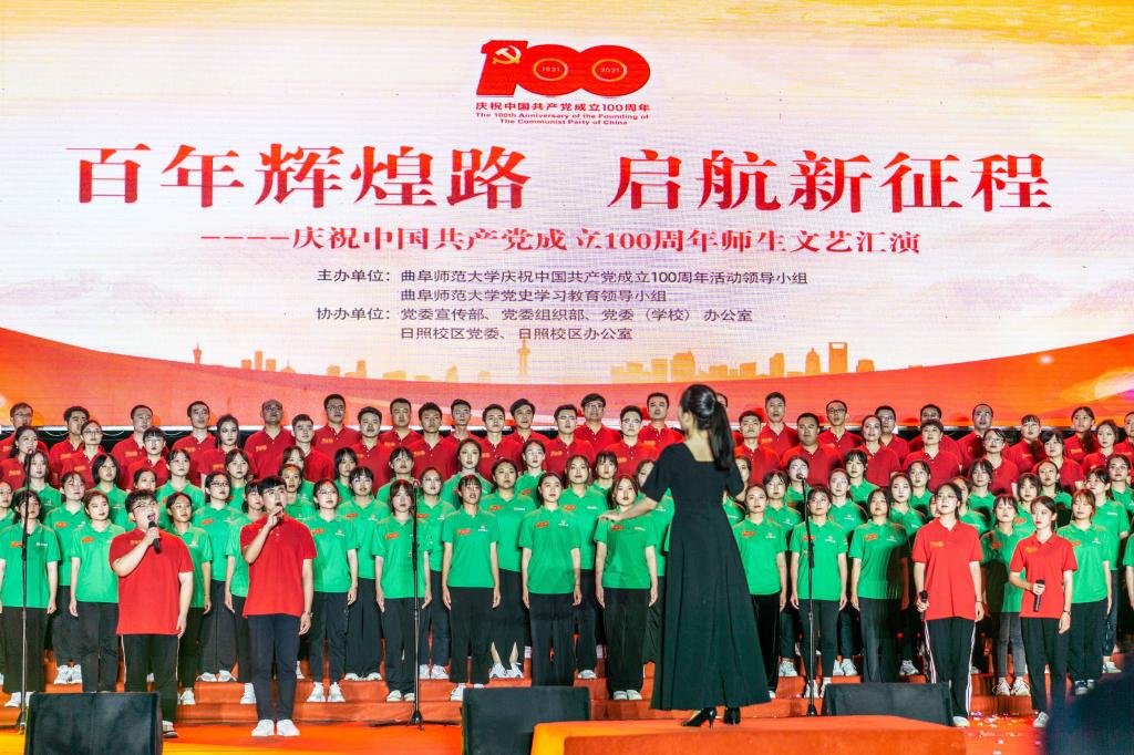 曲阜师大新闻中心讯(记者:李文振 摄影:刘萌 董少伟 王中华 马林梓 姜曰水 尹哲睿 汤捷 刘宇航 王梁 赵宇航 孙龙宇 刘泽翱 通讯员:李玉浩 鹿香玉 宋娜 李梦 刘亚蕊 孙雯 余猜 赵琳 赵伊琳 廖彤欣 王冉 罗珊) 为献礼党的百年华诞、歌颂党的辉煌历史,6月26日晚,华体会官方网隆重举办“百年辉煌路 启航新征程”庆祝中国共产党成立100周年师生文艺汇演,引领广大师生在红色乐章中学党史、知党情、感党恩、跟党走。曲阜校区、日照校区共30个参演单位的师生以饱满的精神、真挚的情感和精心的节目编排,共同打造出一堂极具感染力的党史学习教育公开课。本次文艺汇演开通视频直播,在线点击量近60万。华体会官方网党委书记戚万学,党委副书记、校长张洪海,与党委领导班子成员现场观看了演出。