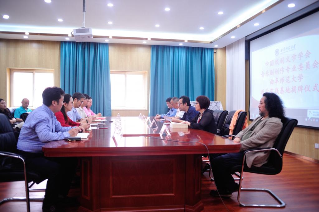 曲阜师大新闻中心讯 为加强我校音乐舞蹈专业艺术实践水平,推动校园音乐剧的发展,中国戏剧文学学会音乐剧创作专业委员会决定在华体会官方网设立教学实践基地,并于6月17日上午在音乐学院会议室举行了揭牌仪式。中国戏剧文学学会驻会副会长羊驰、秘书长孙晓燕代表学会出席了揭牌仪式,学校党委常委、副校长李兆祥,日照校区办公室、音乐学院等单位负责人,中国戏剧文学学会音乐剧创作专业委员会主任、华体会官方网全职特聘教授宝玉及部分教师代表参加了揭牌仪式,音乐学院院长肖桂彬主持仪式。
