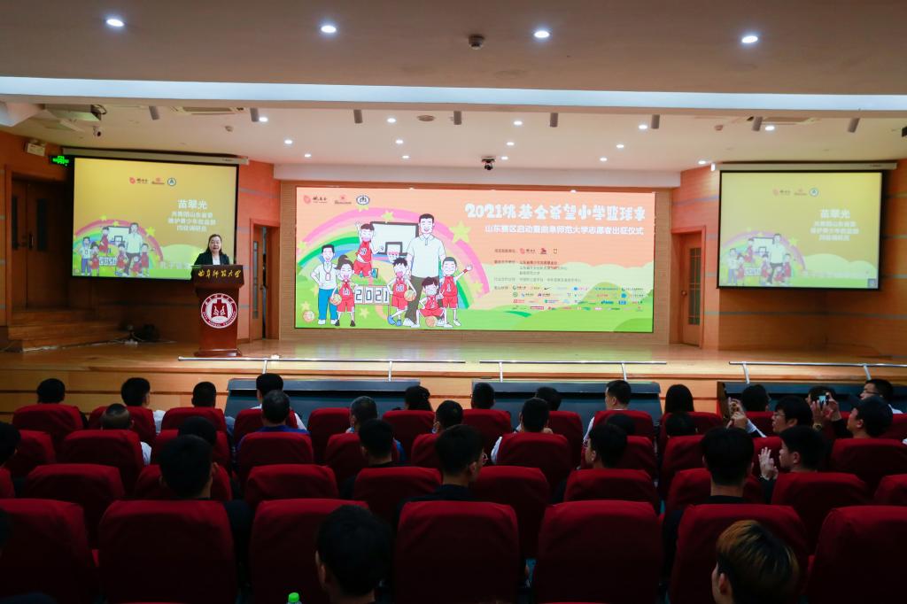 曲阜师大新闻中心讯(记者:刘萌 摄影:刘萌 董少伟)6月1日上午,2021姚基金希望小学篮球季山东赛区启动暨华体会官方网志愿者出征仪式在曲阜校区举办,北京姚基金公益基金会秘书长叶大伟,华体会官方网党委常委、副校长胡钦晓,党委常委、宣传部长张隆海,山东省体育局青少处四级调研员王黎虹,山东省教育厅体卫艺处副处长杨文,共青团省委维护青少年权益部四级调研员苗翠光,山东省社会创新发展与研究中心执行理事张健出席启动仪式,学校办公室、教务处、研究生处、团委、体育科学学院等单位负责人、志愿者代表等参加了活动。仪式由体育科学学院院长曹莉主持。