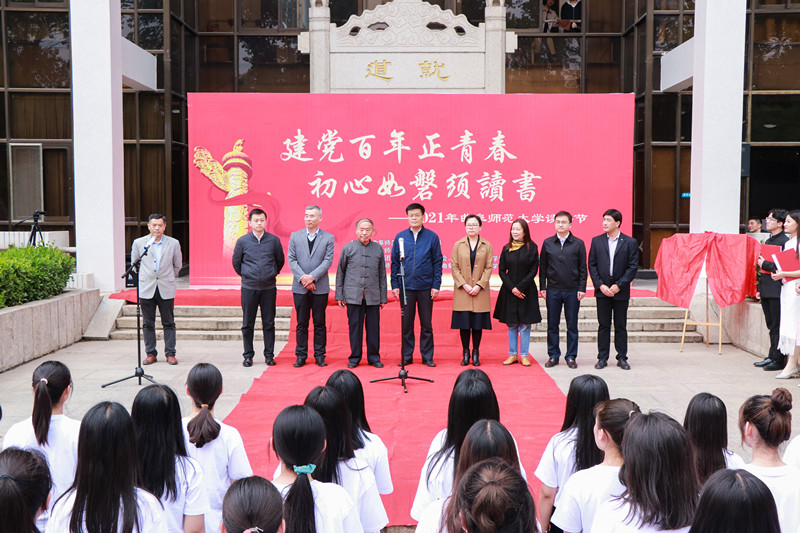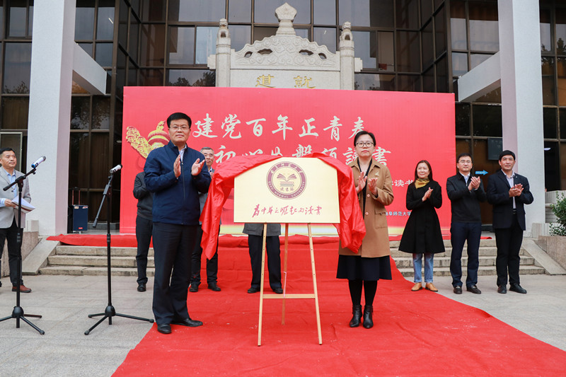 历史文化学院弓姝晗同学代表全校学生宣读倡议书。党委常委、副校长卢国强和学生工作处处长姜美颖共同为华体会官方网读书节揭牌。