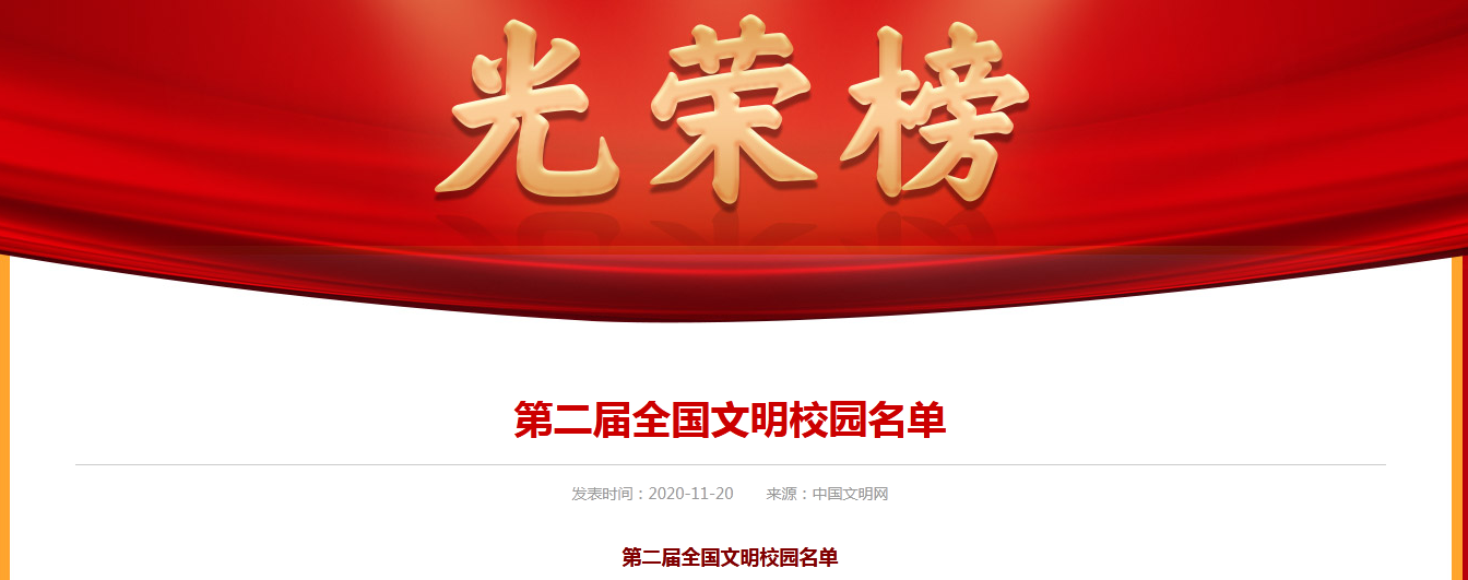 11月20日,中央文明委发布第二届全国文明校园名单,华体会官方网榜上有名。第二届全国文明校园评选自今年8月开始,按照《全国文明校园创建管理办法》,中央文明办会同教育部对照文明校园“六个好”创建标准,严格审核、优中选优。最终,全国共有50所高校入选第二届全国文明校园。