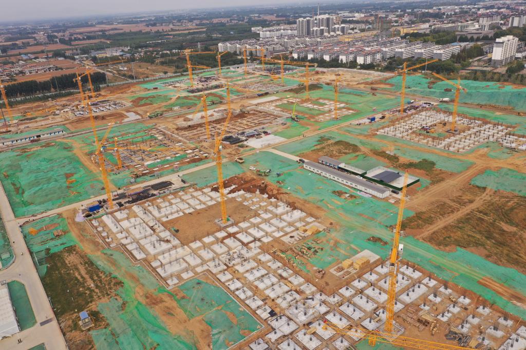 2020年10月,航拍曲阜校区扩建项目施工场景。