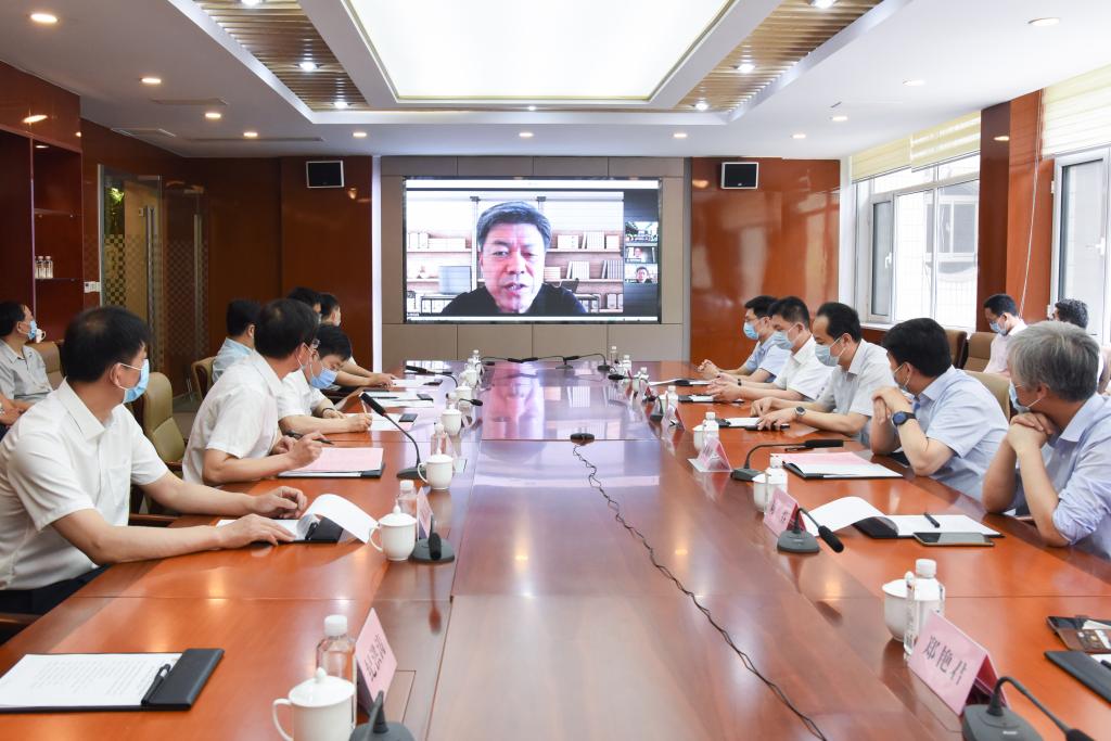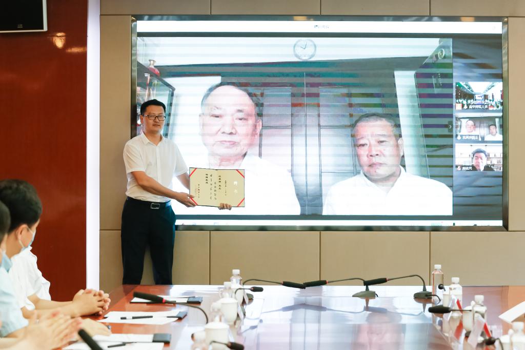 曲阜师大工作人员通过视频连线展示沈昌祥院士(左)特聘证书