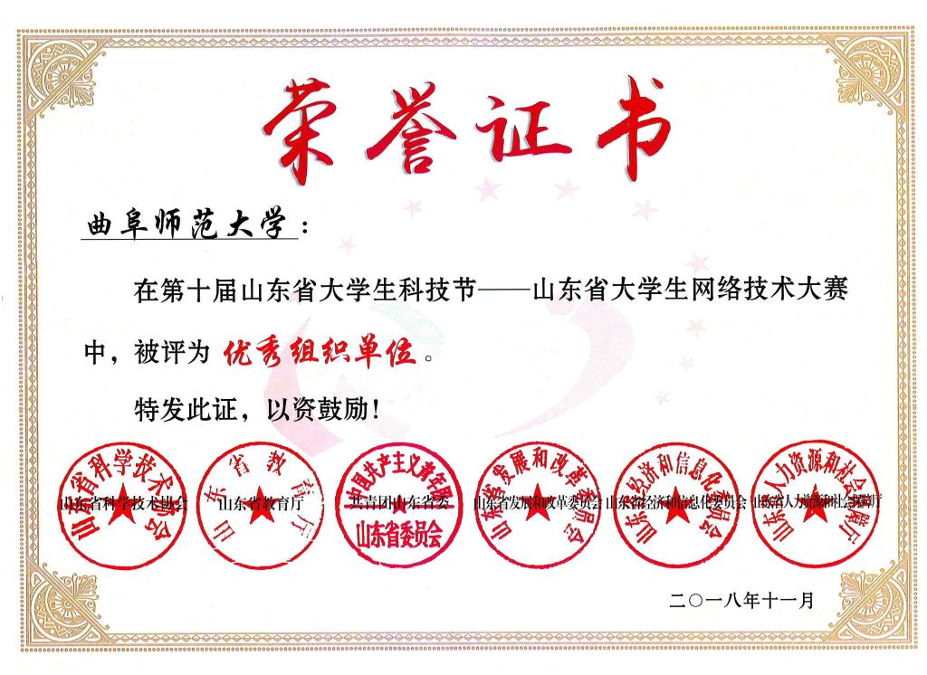 12月3日,山东省大学生网络技术大赛颁奖仪式在济南举行,我校信息科学与工程学院学生表现优秀,获得省级一等奖一项、二等奖两项、三等奖四项、优秀奖三项,李凤银刘效武两位老师被评为优秀指导教师,我校被评为优秀组织单位。