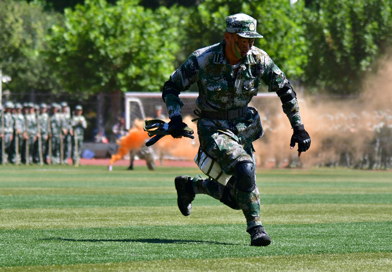 立正、跨立、稍息、停止间转法、齐步,这是军训标配!        (郭维勇   摄)