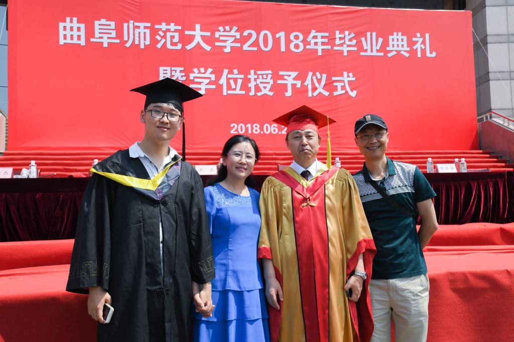 文学院毕业生曲金珠的妈妈说:“从‘就道’与‘弘道’门下走过,多少本书里都渗透着老师们的谆谆教诲、孩子们勤奋的汗水。今天,在孩子带着老师的嘱托、朋友的信任远行之际,衷心祝福曲师大风采永丽,在追求卓越的道路上行得更稳、走得更远。”