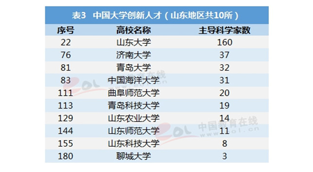 在创新人才数量方面,我校共有20名主导科学家,名列山东高校第5位。