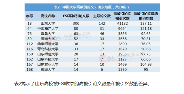 在高被引论文方面,我校ESI高被引论文数为38篇,主导论文数为17篇,高被引论文被引次数为2890次,高被引论文篇均被引次数为76.05次,名列山东高校第5位