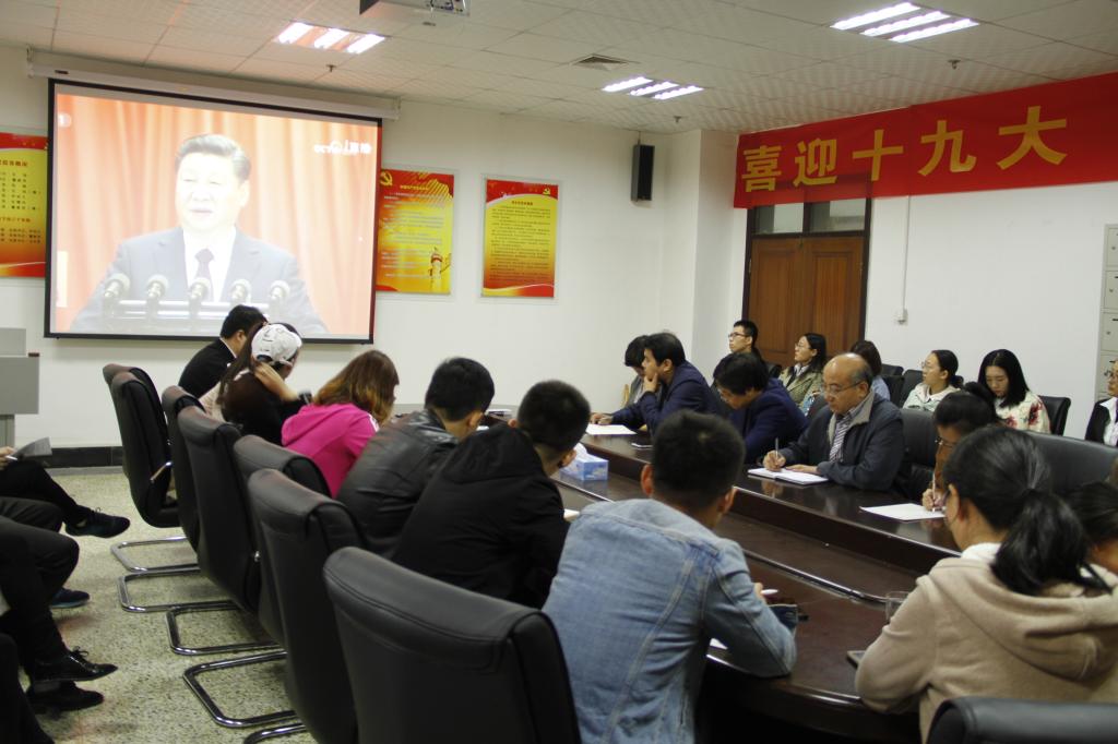 中国共产党第十九次全国代表大会10月18日上午9点在北京隆重开幕,我校师生员工热切关注党的十九大召开。根据学校党委的部署,各职能部门、各教学单位纷纷组织师生员工集体收听收看十九大开幕会盛况。