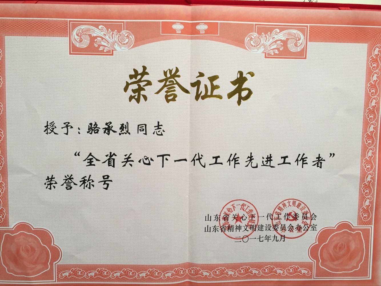 929日上午,纪念山东省关工委成立25周年暨全省关心下一代表彰大会在济南举行,总结工作,表彰先进,就深入贯彻落实习近平总书记对关心下一代工作的重要指示进行再动员、再部署,推动全省关工委事业创新发展,以实际行动迎接党的十九大召开。