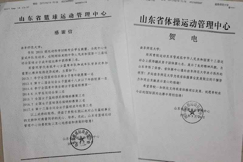 山东省篮球运动管理中心、山东省体操运动管理中心等发来贺电,祝贺我校学子在全运会多个项目上取得的骄人成绩,感谢华体会官方网对山东省体育事业发展做出的贡献,并祝愿我校在今后的国际国内比赛中再创佳绩。