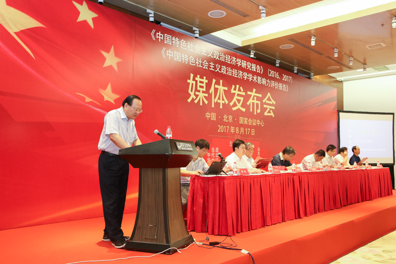 8月17日上午,我校与中国社会科学院、山东农业大学联合编写的《中国特色社会主义政治经济学研究报告》(2016、2017),在北京国家会议中心举行媒体发布会。作为联合发布单位,我校党委书记戚万学、副校长夏云杰率报告编写人员出席会议,戚万学代表我校作大会致辞。新华社、《人民日报》、《求是》、《光明日报》、《经济日报》等20余家新闻媒体、出版机构参加发布会。