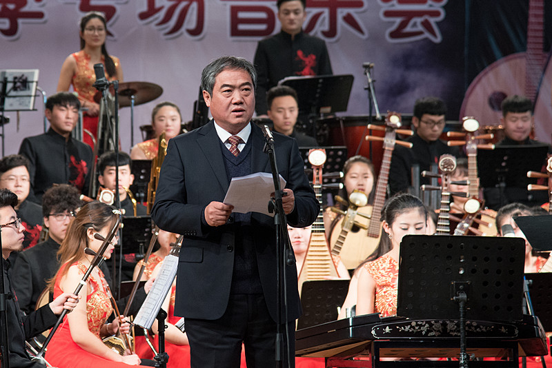 马东骅为音乐会致辞,他指出教育部、文化部、财政部联合举办的 “走进大师、感受经典、陶冶情操、提高修养”高雅艺术进校园活动,已经成为弘扬民族文化的重要途径,临沂大学将高雅艺术与沂蒙红色文化相结合推出“敦煌”民族管弦乐团为推进高雅艺术提供了很好的示范。这场演出不仅给全校师生带来了视听上的享受,也提供了一次亲近高雅艺术,感受沂蒙红色文化魅力的机会。