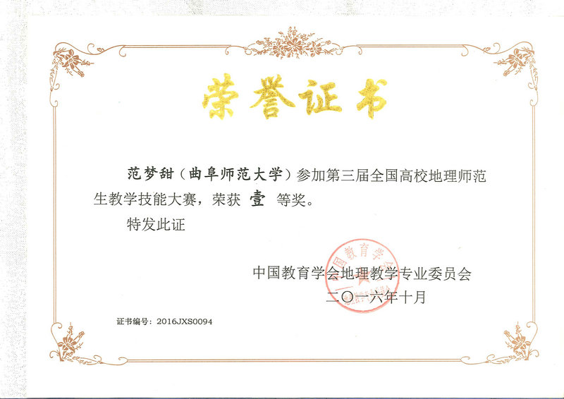 我校在全国地理师范生教学技能大赛中荣获佳绩