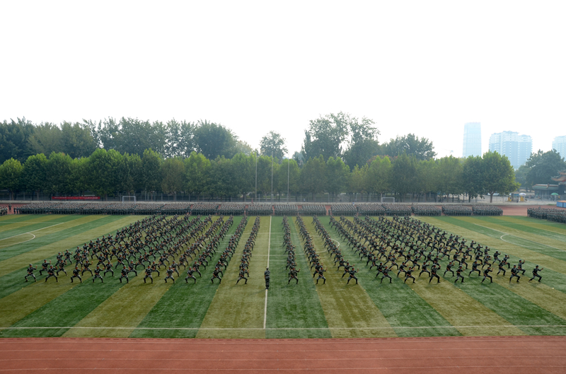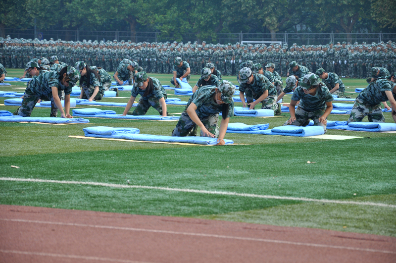 在接下来的军训成果汇报表演中,男生队列动作刚健,女生队列步履铿锵,军体拳方队势如奔雷,擒敌拳方队锐不可当,心理健康操方队潇洒优美,定向越野连队健步如飞,内务方队干净利落,战地救护展示身手不凡。一串串训练有素的动作充分展现了同学们扎实的军训成果。