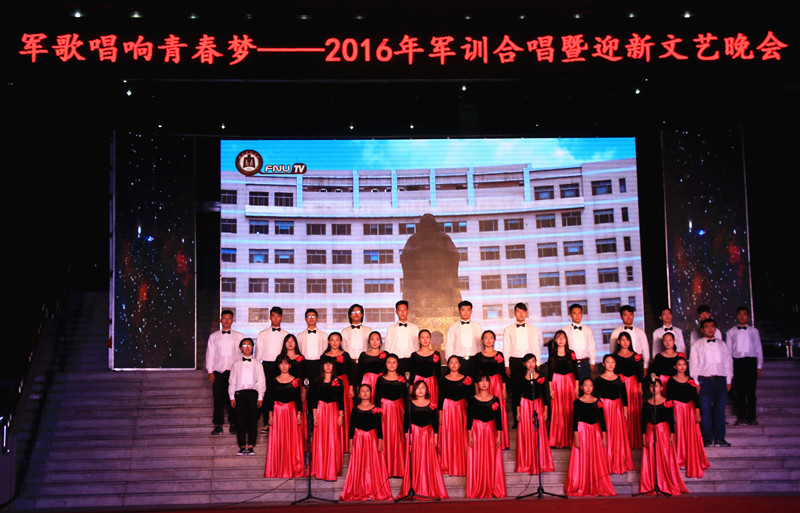 热血燃烧奏响嘹亮军歌,岁月流淌传唱红色经典。为丰富学生军训生活,增强团队凝聚力,营造健康向上的军旅文化氛围。9月22日晚,“军歌唱响青春梦”2016年军训合唱汇演暨迎新文艺晚会在曲阜校区举行。副校长马东骅,组织部、宣传部、学生工作处、校团委、保卫处负责人,山东陆军预备役炮兵师官兵及各学院党总支副书记、新生辅导员老师共同出席观看晚会。
