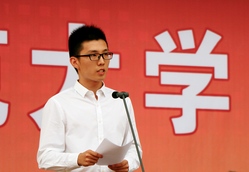 典礼上,教师代表文学院副院长李钧教授、工学院张正强教授,外籍教师代表娜杰日达•拉祖姆科娃女士、肯尼斯•罗伯特•阿诺德先生,学生代表汉语言文学专业2014级王晓晖同学、传媒学院2015级研究生赵彤同学,新生代表软件工程专业2016级唐晓旭同学、马克思主义学部2016级王思贤同学先后发言,围绕如何更好地度过大学生活分享经验、寄托期望、畅谈梦想。