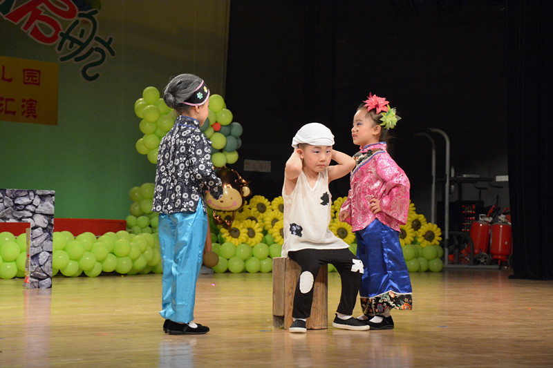 在六个小主持人精彩的亮相中,庆“六一”文艺汇演拉开帷幕。大一班的舞蹈《老师亲妈妈亲》,动感的音乐、满含深情的歌词,以及孩子们俏皮灵动的舞姿,使在场的老师和家长们为之心动;中班的舞蹈《快乐儿歌》《咏鹅》,充分展示了孩子们的童真童趣;小班的舞蹈《快乐宝贝》《去郊游》《虫儿飞》,动作稚朴,笑容纯真,博得了大家的阵阵掌声;大班的《孔子爷爷》《说唱脸谱》,向大家展示了优秀的中华传统文化;大三班的舞蹈《春芽》,将抒情的旋律和柔美的舞姿完美融合,带给观众以美的享受;中班的童话剧《半夜鸡叫》,通过孩子们惟妙惟肖的表演重新诠释了这个经典故事,让小朋友明白了做人不能太吝啬,否则就会像剧中的周扒皮一样“悲惨”。 互动节目更让台上台下连成一片,嗨翻全场。孩子们个个劲头十足,红红的脸蛋上流露出灿烂的笑容,家长们的阵阵喝彩声更是把演出推向了高潮。在中二班的《庆祝六一》的歌曲中,文艺汇演圆满落下帷幕。