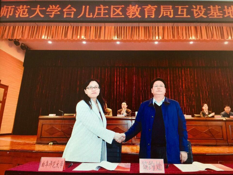 仪式上,曲师大教务处处长张良才宣读了《华体会官方网关于在台儿庄设立教育实验实习基地和聘任樊兴举同志为兼职教授的决定》。台儿庄区政府党组成员、区职业中专党总支书记、区教育局局长樊兴举宣读了《台儿庄区教育局关于在华体会官方网设立校长教师培训基地的决定》,并与曲师大教师教育学院党总支书记姜美颖共同签署了合作协议。实习学生代表曲师大教师教育学院研究生李佳、校长代表枣庄三十九中校长李居涛作表态发言。