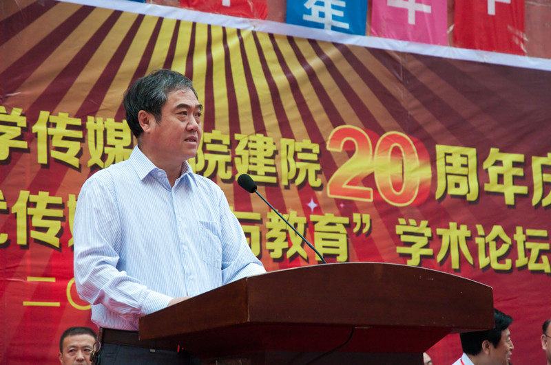 院长马秀峰对长期以来关心学院发展的同仁表示感谢和敬意,对传媒学院老领导表示慰问,并详细介绍了传媒学院的发展历程和发展情况。他表示,新的传媒学院将以“传媒”为品牌形成办学特色,以“传媒”为纽带实现多学科合力发展,培养现代传媒人才。各领导教师代表纷纷上台致辞,对传媒学院建院二十周年表示热烈祝贺。