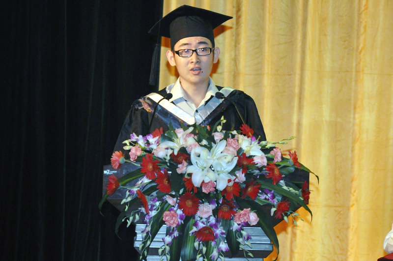 典礼上,教师代表、文学院张瑞英教授和法学院张益刚教授以及为在校生代表、毕业生代表分别发言,毕业生代表向教师代表鲜花,表达了对老师们四年培育之恩的深深谢意。