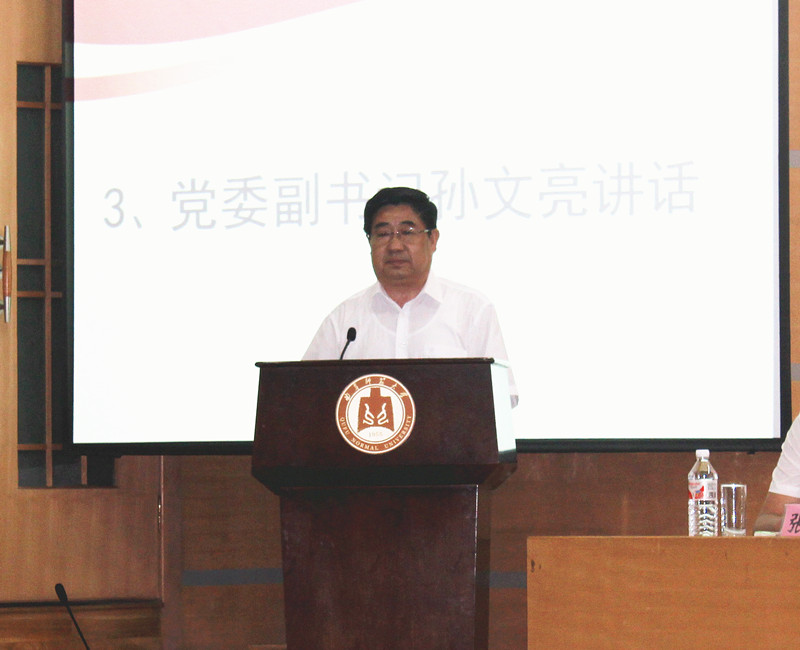 大会在庄重的国歌声中开幕。孙文亮首先代表学校党委向会议的召开表示祝贺,对积极从事、参与学生社团工作的师生表示感谢,对我校学生社团在活跃校园文化氛围、提升学生综合素质方面发挥的作用予以肯定。孙文亮指出社团是大学基本的学生组织,是校园文化活动的重要载体,是学生组织的活动单元。自1981年我校第一个学生社团——杏坛文学社成立至今三十多年来,我校社团总数已达150多个,社团干部近千人,拥有会员万余名,形成了“百团、千英、万优”的强大阵容。为了加强社团建设,孙文亮提出了“强百团、聚千英、育万优”的口号,希望各社团能以历史和发展的眼界,交流研讨社团工作经验,凝聚、服务学子,助力学团和学校工作,将社团建设提升到新的高度和水平。