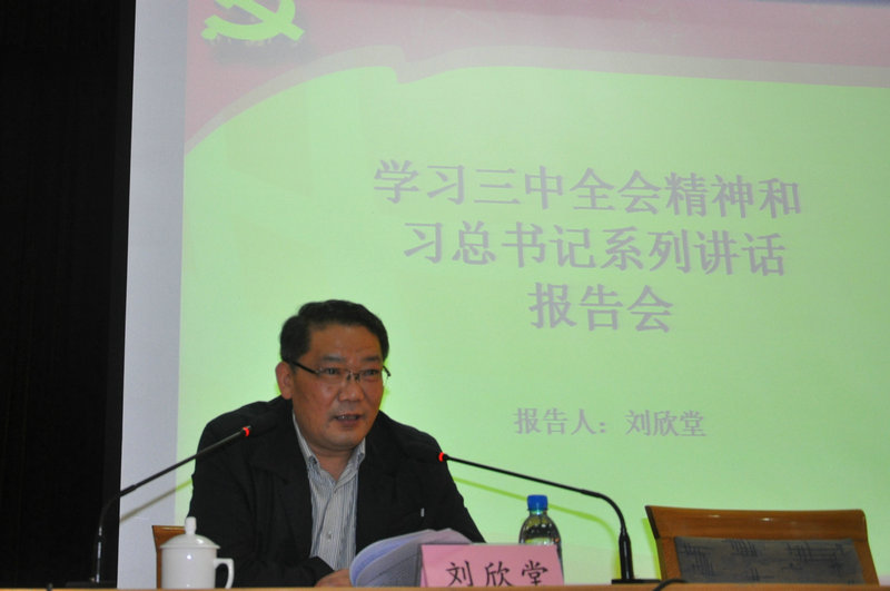 为进一步贯彻落实党的十八届三中全会精神,深入学习习总书记系列讲话,加强和改进大学生思想道德教育工作,321下午,我校邀请省委高校工委宣教处处长刘欣堂做了学习三中全会精神和习总书记系列讲话的专题报告。报告会由党委副书记刘新生主持。