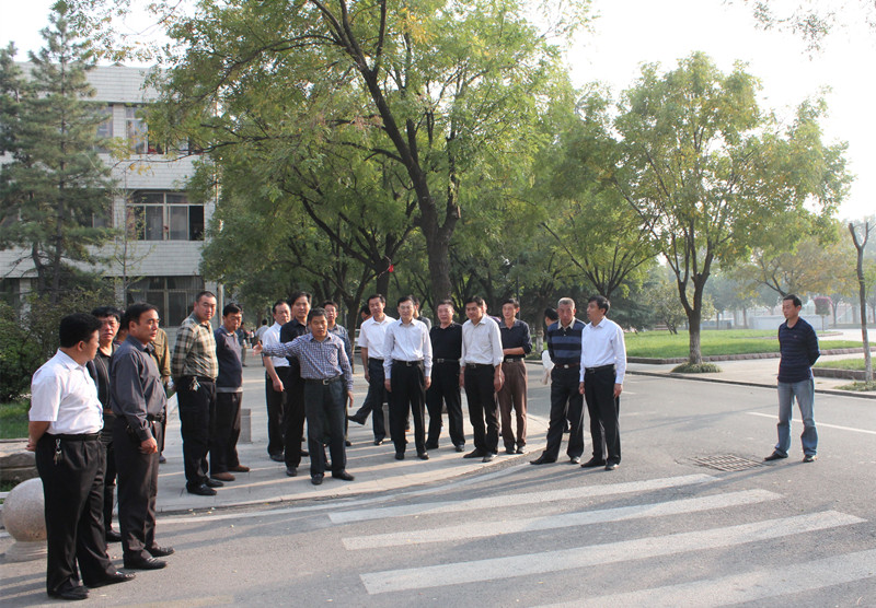 在听取了扈庆学的汇报之后,与会人员来到校园中进行了实地考察,参观了我校技防系统监控中心、机动车辆门禁管理系统、校园道路标识、警务室、清真食堂等关系到师生员工切身安全的各项设施的建设和使用情况。