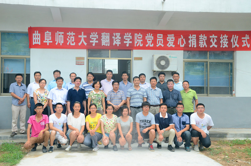 慰问期间,我校翻译学院党员爱心捐赠交接仪式在泗张镇大厂村举行。翻译学院党支部组织党员向大厂村两名孤儿伸出援助之手,表达关爱之情,筹集爱心捐款8370余元,用于解决孩子们生活和学习中遇到的困难。