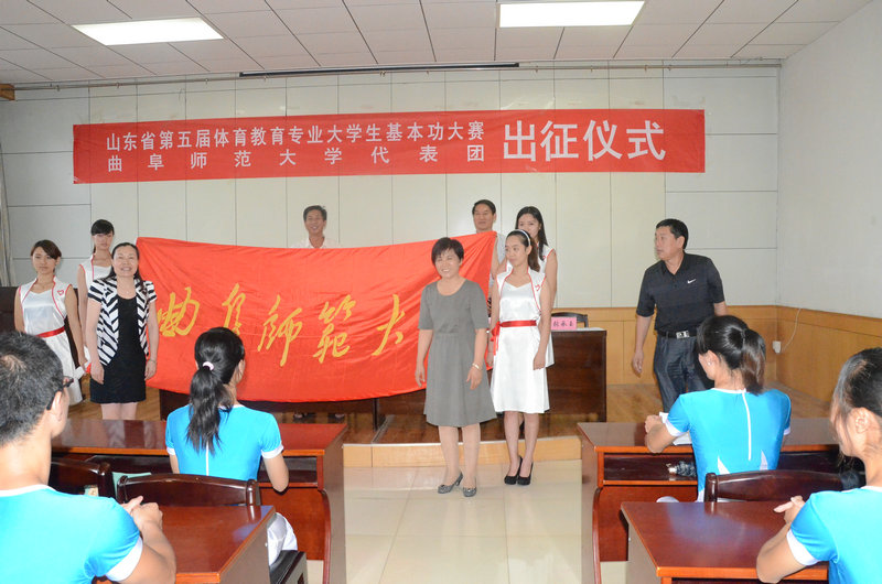7月4日下午,我校参加山东省第五届体育教育专业大学生基本功大赛的代表团举行出征仪式,副校长康淑敏出席仪式,教务处、体育科学学院负责人参加仪式,仪式由体育科学学院院长曹莉主持。