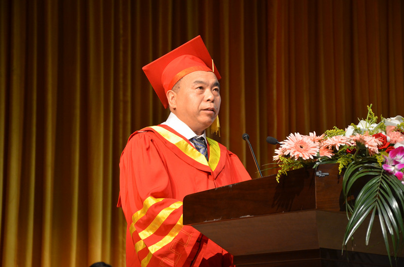 校长傅永聚教授在典礼上讲话,代表学校向圆满完成学业的毕业生表示热烈祝贺,向付出辛勤汗水的家长、老师表示衷心感谢。傅永聚肯定了本届毕业生取得的优异成绩,勉励同学们以国家为己任,勇于面对生活中的困难与阴霾,树德立行,坚定理想,艰苦奋斗,不断向前。傅永聚真诚祝愿2013届毕业生在未来的人生道路上再攀高峰、前程似锦。