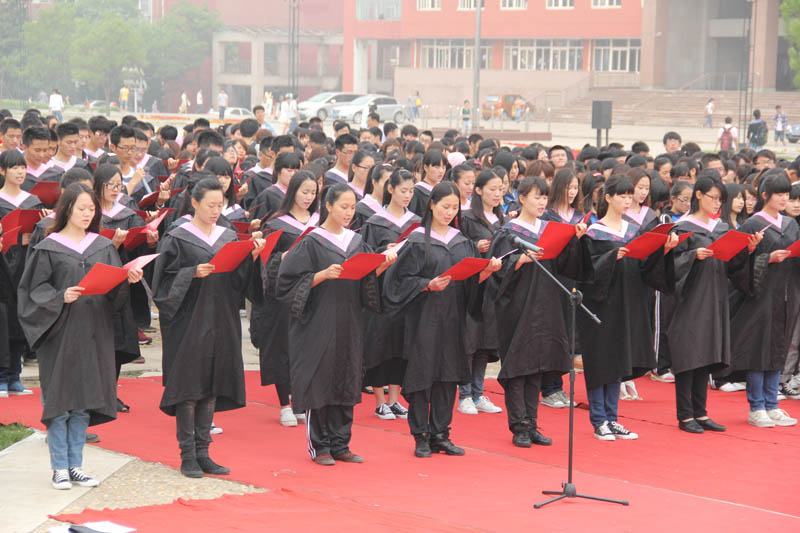 在激昂的音乐声中,纪委书记郭辰夫和汤恩佳先生共同为孔子圣像揭幕。幕布缓缓揭下,一座高大、庄重的的孔子圣像呈现出来,现场响起了热烈的掌声。接着,由72名统一身着学士服的优秀学生代表,在孔子像前颂读儒家经典名篇。