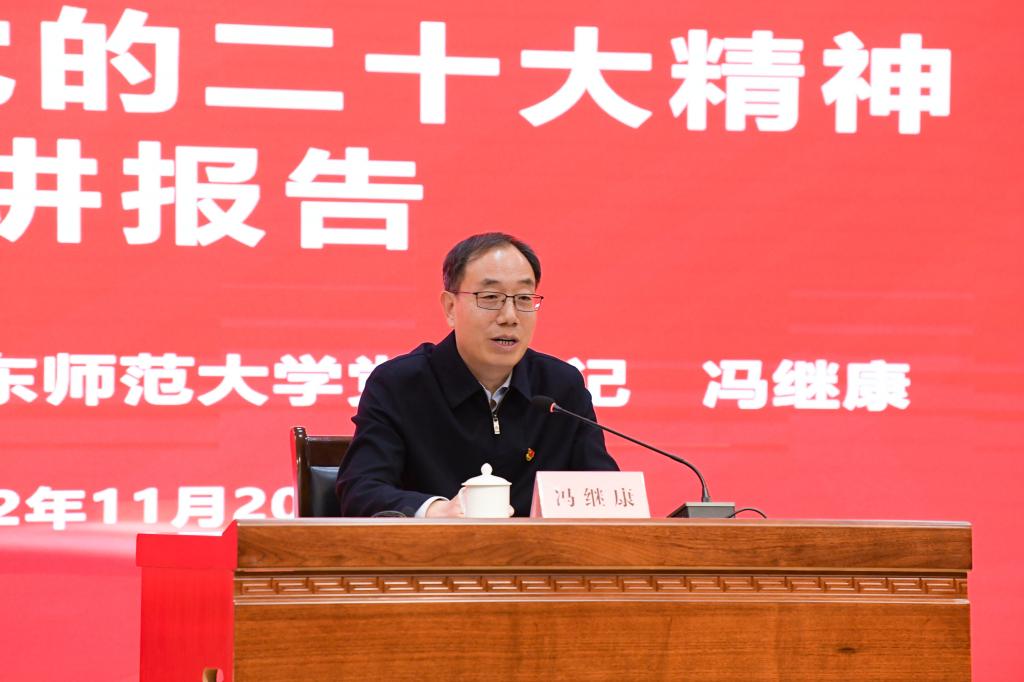 曲阜师大新闻中心讯(记者:李文振 摄影:刘萌 司娜) 根据省委宣讲工作安排,11月20日上午,省委宣讲团成员、山东师范大学党委书记冯继康,到曲阜师大宣讲党的二十大精神。曲阜师大党委书记邢光主持宣讲会。