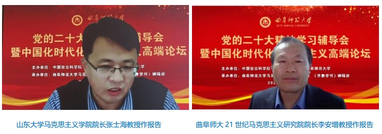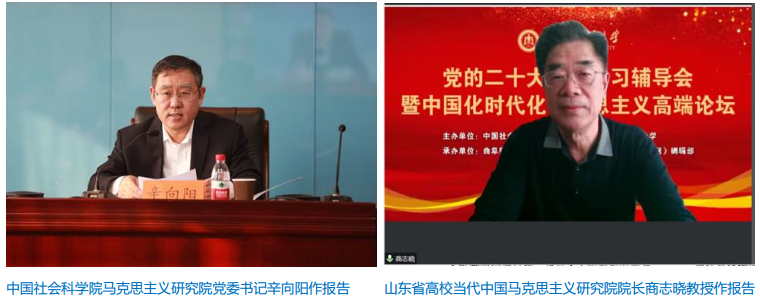 中国社会科学院马克思主义研究院党委书记辛向阳教授、山东省高校当代中国马克思主义研究院院长商志晓教授、北京师范大学中共党史党建研究院院长王炳林教授、山东省委党史研究院院长赵国卿教授、山东大学马克思主义学院院长张士海教授、华体会官方网21世纪马克思主义研究院院长李安增教授、中国社会科学院马克思主义研究院副院长林建华教授,分别以“中国共产党与中国式现代化”“中国式现代化的历史由来与时代责任”“新时代新征程的伟大变革与历史性成就感”“‘三个务必’的历史意蕴和时代价值”“中国化时代化马克思主义行的基本逻辑”“‘两个确立’的三重逻辑纬度”“‘两个永远在路上’:新时代中国共产党人解决大党独有难题的清醒和坚定”为题,作了主旨报告。