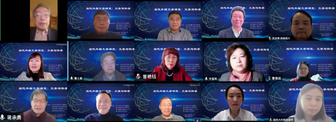 曲阜师大外国语学院讯 日前,“当代外国文学研究:文学与科学”会议通过线上方式顺利召开。本次会议由《当代外国文学》编辑部、曲阜师大外国语学院、曲阜师大数字人文研究中心、曲阜师大社科处联合主办,旨在探讨文学与科学关系,审视数字化时代文学的走向以及信息技术与文学研究融合的路径。与会专家学者围绕“文学与科学”这一主题展开了热烈研讨,共计1000余人参加了会议。华体会官方网党委书记邢光与《当代外国文学》主编、南京大学杨金才教授分别在开幕式上致辞,开幕式由华体会官方网外国语学院院长秦洪武教授主持。