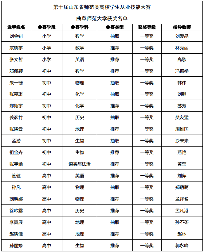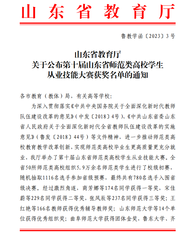 再获团体金奖 曲阜师大在第十届全省师范类高校学生从业技能大赛中续写辉煌