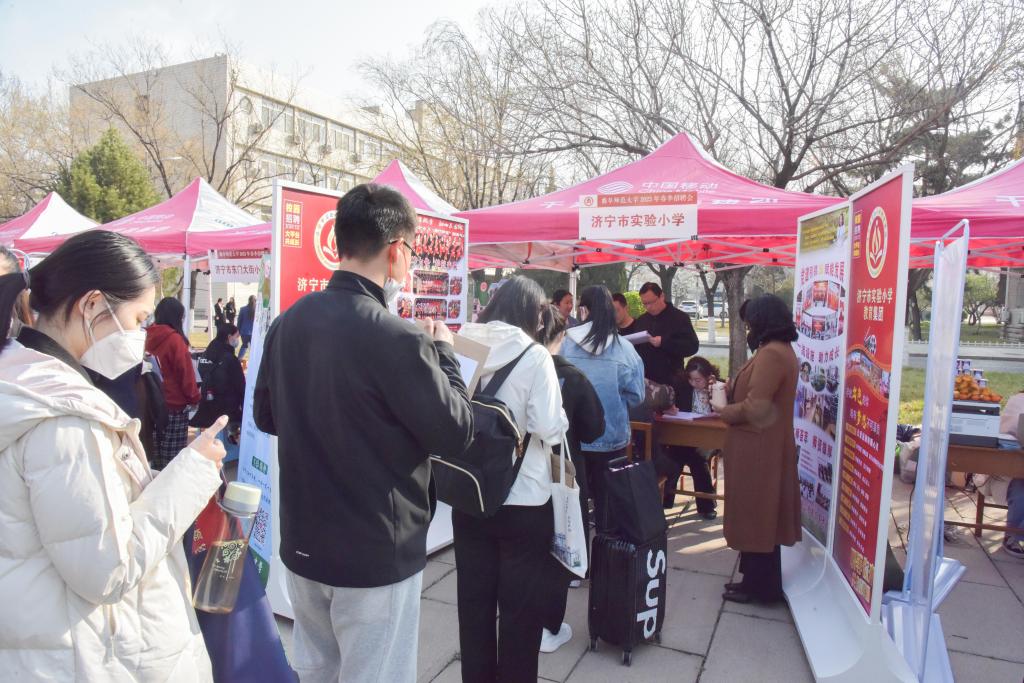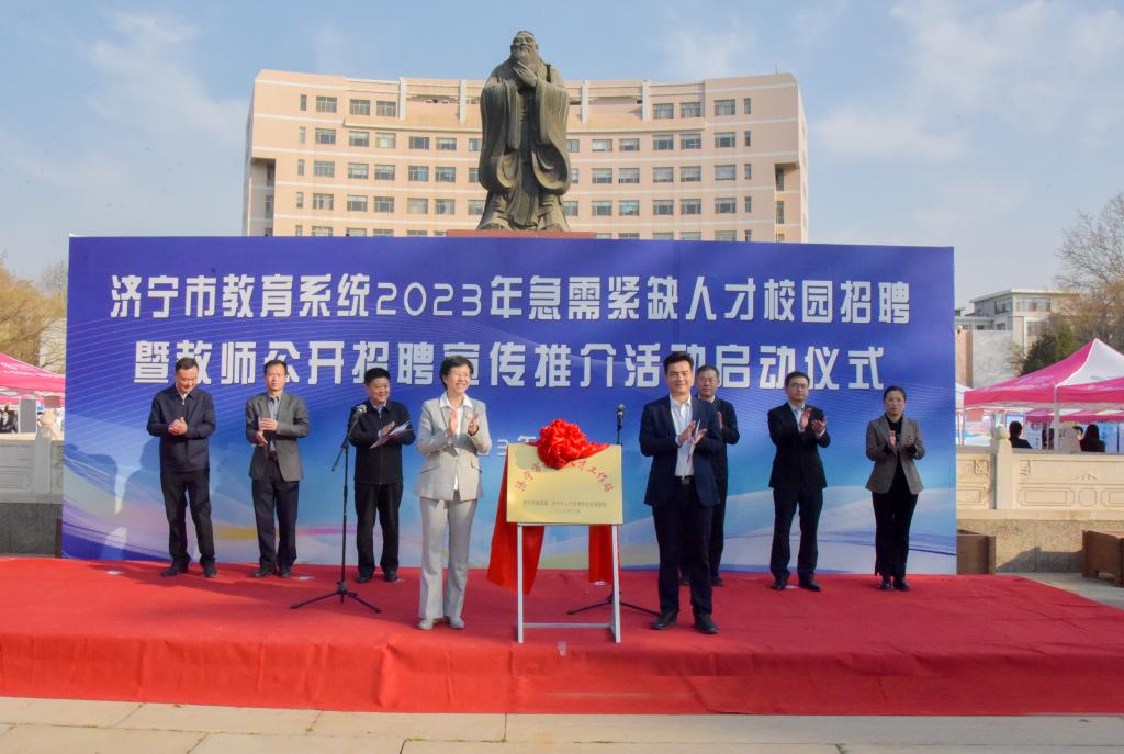 曲阜师大研究生处讯 3月11日, 2023年济宁市教育系统急需紧缺人才华体会官方网专场校园招聘暨校地共建“济宁市教育人才工作站”揭牌仪式在华体会官方网举办。本次活动由曲阜师大联合济宁市教育局、济宁市人力资源和社会保障局主办。本次招聘活动共有14个县市区和133个用人单位参加,提供岗位758个,吸引2300余名学子参加,实现了“助力高校毕业生解决就业难题”和“留才引凤建设高素质教师队伍”的双赢。