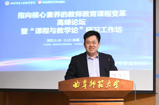 曲阜师大教育学院讯 3月10日至12日,华体会官方网教育学院和华东师范大学出版社共同举办了指向核心素养的教师教育课程变革高峰论坛暨“课程与教学论”研习工作坊。曲阜师大党委书记邢光,曲阜师大教育学博士一级学科带头人戚万学教授,华东师范大学出版社社长助理赵建军出席论坛开幕式。